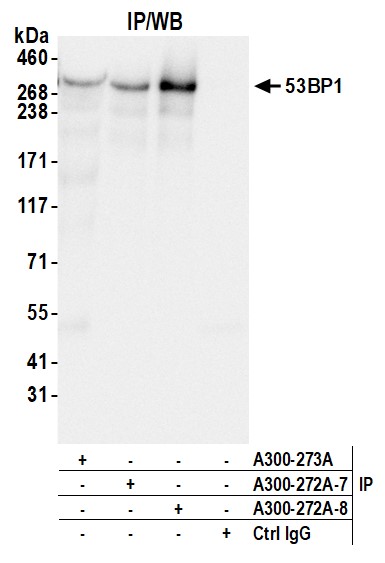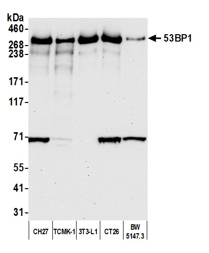 | Immunogen: | synthetic peptide. The epitope recognized by A300-272A-T maps to a region between residues 350 and 400 of human tumor protein p53 binding protein 1 using the numbering given in entry NP_005648.1 (GeneID 7158). |