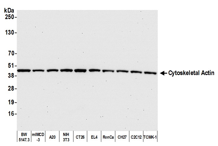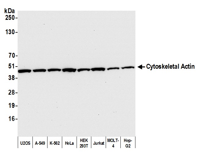 | Immunogen: | synthetic peptide. The epitope recognized by A300-491A-T maps to the N-terminus of human Beta-actin using the numbering given in Swiss-Prot entry P60709 (GeneID 60). |