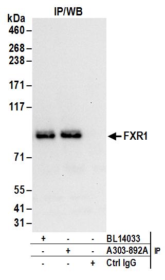 | Immunogen: | synthetic peptide. The epitope recognized by A303-892A-T maps to a region between residue 571 and 621 of human Fragile X Mental Retardation, Autosomal Homolog 1 using the numbering given in entry NP_005078.2 (GeneID 8087). |