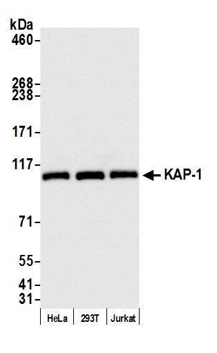| Immunogen: | synthetic peptide. The epitope recognized by A300-274A-T maps to a region between residue 1 and 50 of human Tripartite Motif-Containing 28 using the numbering given in entry NP_005753.1 (GeneID 10155). |