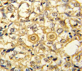 In 1X PBS, pH 7.4, with 0.09% sodium azide. PDGFRB is a cell surface tyrosine kinase receptor for members of the platelet-derived growth factor family. These growth factors are mitogens for cells of mesenchymal origin. The identity of the growth factor bound to a receptor monomer determines whether the functional receptor is a homodimer or a heterodimer, composed of both platelet-derived growth factor receptor alpha and beta polypeptides. The gene is flanked on chromosome 5 by the genes for granulocyte-macrophage colony-stimulating factor and macrophage-colony stimulating factor receptor, all three genes may be implicated in the 5-q syndrome. A translocation between chromosomes 5 and 12, that fuses the gene to that of the translocation, ETS, leukemia gene, results in chronic myelomonocytic leukemia. Protein function: Tyrosine-protein kinase that acts as cell-surface receptor for homodimeric PDGFB and PDGFD and for heterodimers formed by PDGFA and PDGFB, and plays an essential role in the regulation of embryonic development, cell proliferation, survival, differentiation, chemotaxis and migration. Plays an essential role in blood vessel development by promoting proliferation, migration and recruitment of pericytes and smooth muscle cells to endothelial cells. Plays a role in the migration of vascular smooth muscle cells and the formation of neointima at vascular injury sites. Required for normal development of the cardiovascular system. Required for normal recruitment of pericytes (mesangial cells) in the kidney glomerulus, and for normal formation of a branched network of capillaries in kidney glomeruli. Promotes rearrangement of the actin cytoskeleton and the formation of membrane ruffles. Binding of its cognate ligands - homodimeric PDGFB, heterodimers formed by PDGFA and PDGFB or homodimeric PDGFD -leads to the activation of several signaling cascades, the response depends on the nature of the bound ligand and is modulated by the formation of heterodimers between PDGFRA and PDGFRB. Phosphorylates PLCG1, PIK3R1, PTPN11, RASA1/GAP, CBL, SHC1 and NCK1. Activation of PLCG1 leads to the production of the cellular signaling molecules diacylglycerol and inositol 1,4,5- trisphosphate, mobilization of cytosolic Ca(2+) and the activation of protein kinase C. Phosphorylation of PIK3R1, the regulatory subunit of phosphatidylinositol 3-kinase, leads to the activation of the AKT1 signaling pathway. Phosphorylation of SHC1, or of the C-terminus of PTPN11, creates a binding site for GRB2, resulting in the activation of HRAS, RAF1 and down-stream MAP kinases, including MAPK1/ERK2 and/or MAPK3/ERK1. Promotes phosphorylation and activation of SRC family kinases. Promotes phosphorylation of PDCD6IP/ALIX and STAM. Receptor signaling is down-regulated by protein phosphatases that dephosphorylate the receptor and its down-stream effectors, and by rapid internalization of the activated receptor. [The UniProt Consortium]