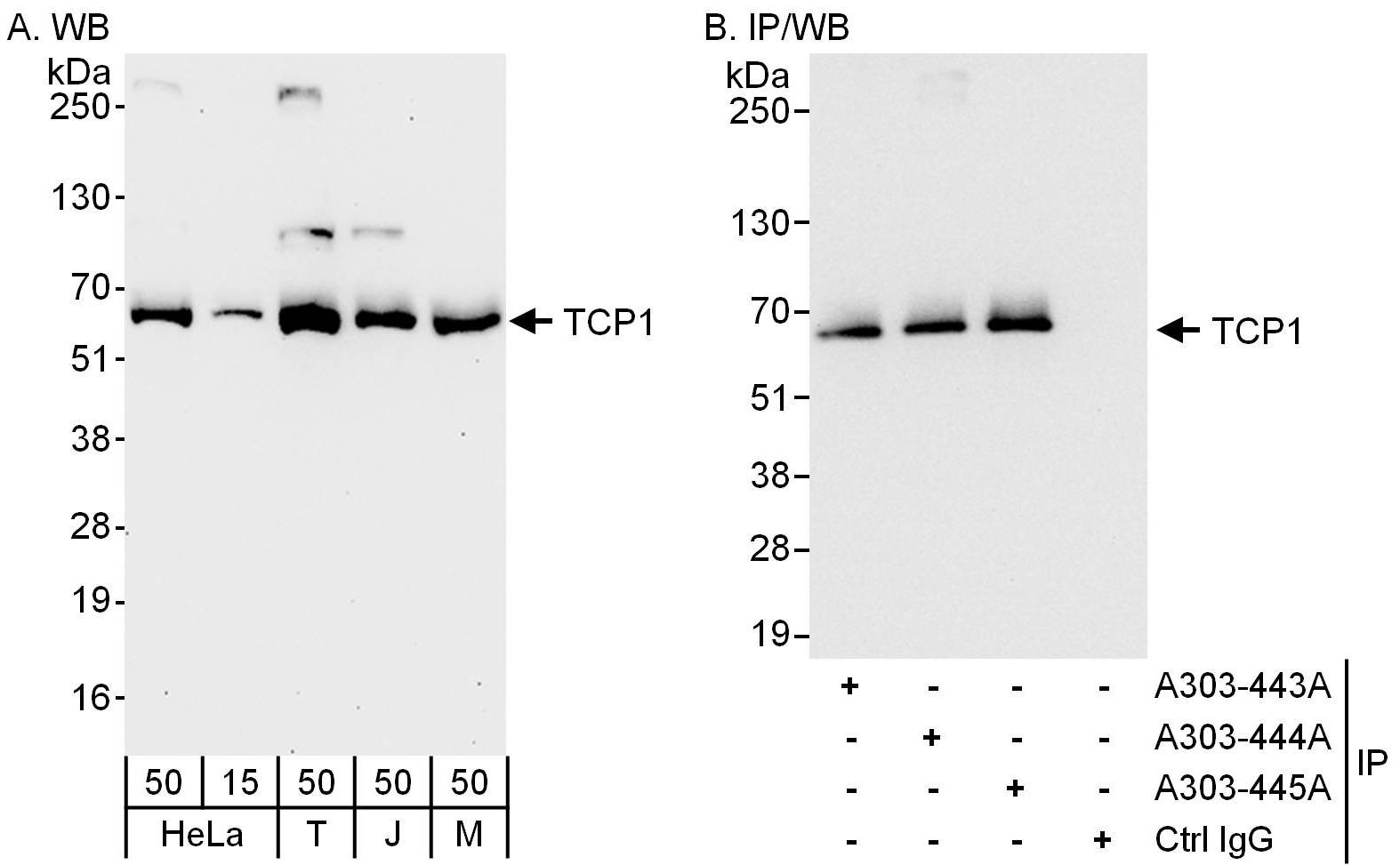 | Immunogen: | synthetic peptide. The epitope recognized by A303-444A-T maps to a region between residue 450 and 500 of human T-Complex 1 using the numbering given in entry NP_110379.2 (GeneID 6950). |