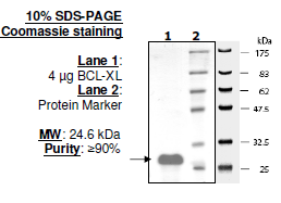 Active human Bcl-xL (amino-acids 1-212) GenBank Accession No. Z23115) with Cterminal His tag, MW = 28 kDa, expressed in an E. coli expression system.