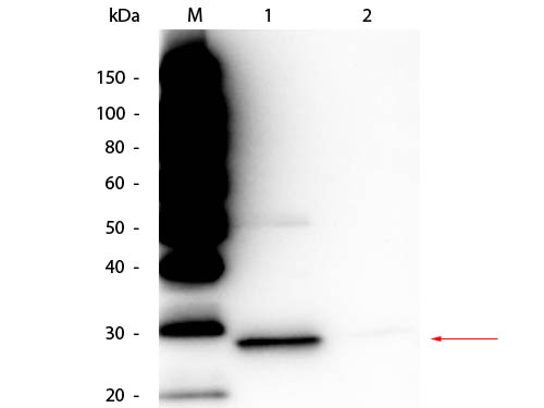 This TrueBlot(R) Immunoprecipitation and Western Blot Kit for GFP Epitope Tag allows for the detection of GFP-tagged recombinant protein present in cell lysates provided by the user. Mouse TrueBlot(R) ULTRA Antibody Peroxidase Conjugate was prepared from tissue culture supernatant by Protein G affinity chromatography. Assay by Immunoelectrophoresis resulted in a single precipitin arc against anti-Mouse Serum. Reactivity is observed against native Mouse IgG by both Western blot and ELISA. TrueBlot(R) Immunoprecipitation and Western Blot Kit for GFP Epitope Tag allows for the immunoprecipitation and detection of GFP-tagged recombinant proteins present in cell lysates provided by the user. After protein separation by SDS-PAGE and transfer, the membrane is probed with monoclonal Anti-GFP. Detection of the membrane bound antibody-antigen complex is achieved by the addition of Mouse IgG TrueBlot(R) ULTRA HRP. The TrueBlot(R) Immunoprecipitation and Western Blot Kit for GFP Epitope Tag contains the critical supporting reagents, buffers, and substrates for immunoprecipitation and Western blotting of samples containing a GFP Epitope Tag using TrueBlot second step immunoblotting reagents in conjunction with Rockland's Anti-GFP (MOUSE) Monoclonal Antibody. TrueBlot technology enables unhindered detection of protein bands of interest which would otherwise be obscured by the presence of reduced and denatured heavy and light chain immunoglobulin in the blot (as detected by the conventional immunoblotting HRP anti-mouse IgG reagent). Mouse IgG TrueBlot(R) ULTRA is the unique horseradish peroxidase conjugated anti-mouse IgG immunoblotting second step reagent which enables detection of immunoblotted target protein bands, without hindrance from interfering immunoglobulin heavy and light chains from your IP antibody. Use it in place of your usual HRP anti-mouse IgG immunoblotting second step reagent. It is easy to generate publication-quality IP/WB data with Mouse IgG TrueBlot(R) ULTRA. Mouse IgG TrueBlot ULTRA is ideal for use in protocols involving immunoblotting of immunoprecipitated proteins. TrueBlot preferentially detects the non-reduced form of mouse IgG over the reduced, SDS-denatured form of IgG. When the immunoprecipitate is fully reduced immediately prior to SDS-gel electrophoresis, reactivity of Mouse IgG TrueBlot ULTRA with the 55 kDa heavy chains and the 23 kDa light chains of the immunoprecipitating antibody is minimized thereby eliminating interference by the heavy and light chains of the immunoprecipitating antibody in IP/immunoblotting applications. Applications include studies examining post-translational modification (e.g., phosphorylation or acetylation) or protein-protein interactions.