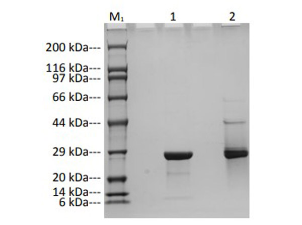 Humanized Recombinant anti-VEGFA ScFV fragment was expressed in CHO cells. The purity was estimated to be >90% by SDS-PAGE analysis. Protein function: Growth factor active in angiogenesis, vasculogenesis and endothelial cell growth. Induces endothelial cell proliferation, promotes cell migration, inhibits apoptosis and induces permeabilization of blood vessels. Binds to the FLT1/VEGFR1 and KDR/VEGFR2 receptors, heparan sulfate and heparin. NRP1/Neuropilin-1 binds isoforms VEGF-165 and VEGF-145. Isoform VEGF165B binds to KDR but does not activate downstream signaling pathways, does not activate angiogenesis and inhibits tumor growth. Binding to NRP1 receptor initiates a signaling pathway needed for motor neuron axon guidance and cell body migration, including for the caudal migration of facial motor neurons from rhombomere 4 to rhombomere 6 during embryonic development. Also binds the DEAR/FBXW7-AS1 receptor (PubMed:17446437). [The UniProt Consortium]