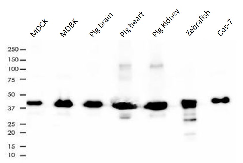 | Species reactivity: | human, mouse, rat, african green monkey, bovine, dog, swine, zebrafish |