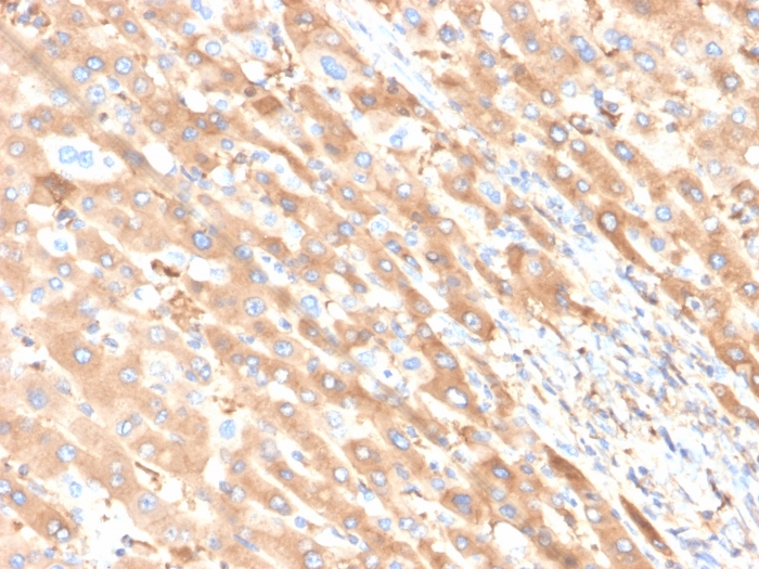 Formulation: Purified Ab with BSA and Azide at 200ug/ml. Cellular Localization: Secreted. Positive Control: Human serum. Human liver or hepatocellular carcinoma. Chromosome Location: 4q13.3. Protein Function: Binds water, Ca(2+), Na(+), K(+), fatty acids, hormones, bilirubin and drugs (Probable). Its main function is the regulation of the colloidal osmotic pressure of blood (Probable). Major zinc transporter in plasma, typically binds about 80% of all plasma zinc (PubMed:19021548). Major calcium and magnesium transporter in plasma, binds approximately 45% of circulating calcium and magnesium in plasma (By similarity). Potentially has more than two calcium-binding sites and might additionally bind calcium in a non-specific manner (By similarity). The shared binding site between zinc and calcium at residue Asp-273 suggests a crosstalk between zinc and calcium transport in the blood (By similarity). The rank order of affinity is zinc > calcium > magnesium (By similarity). Binds to the bacterial siderophore enterobactin and inhibits enterobactin-mediated iron uptake of E.coli from ferric transferrin, and may thereby limit the utilization of iron and growth of enteric bacteria such as E.coli (PubMed:6234017). Does not prevent iron uptake by the bacterial siderophore aerobactin (PubMed:6234017) [The Uniprot Consortium]