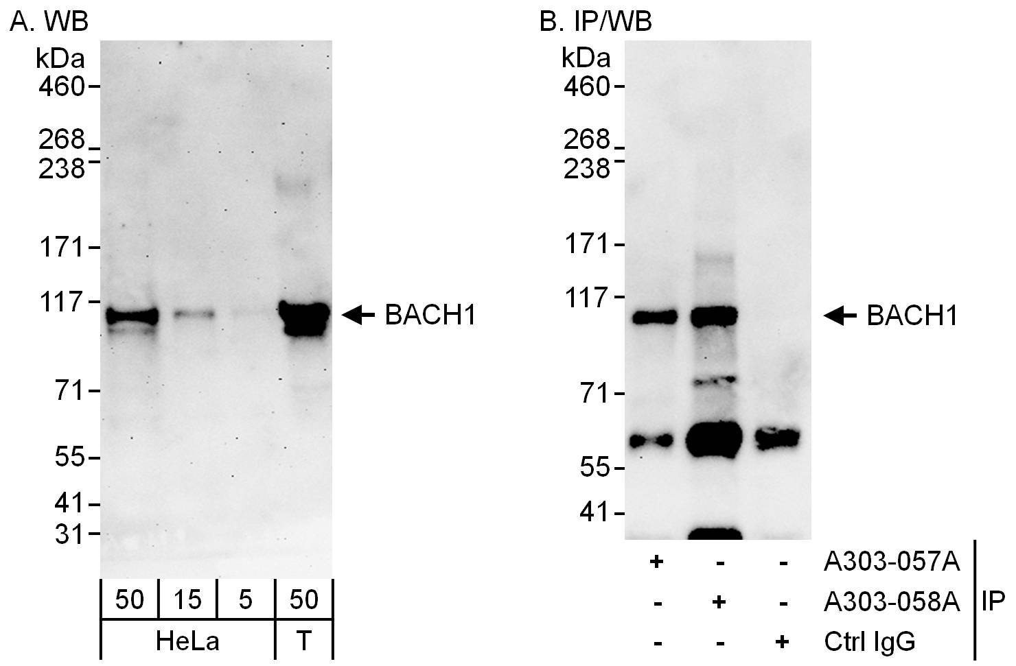 | Immunogen: | synthetic peptide. The epitope recognized by A303-058A-T maps to a region between residue 650 and 700 of human BTB and CNC Homology 1, Basic Leucine Zipper Transcription Factor 1 using the numbering given in entry NP_001177.1 (GeneID 571). |