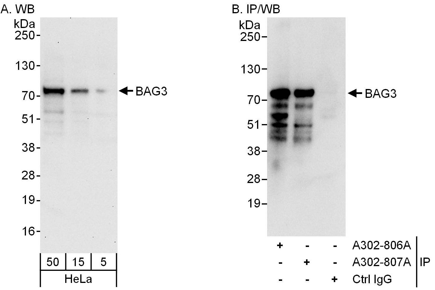 | Immunogen: | synthetic peptide. The epitope recognized by A302-806A-T maps to a region between residue 300 and 350 of human BCL2-associated athanogene 3 using the numbering given in entry NP_004272.2 (GeneID 9531). |