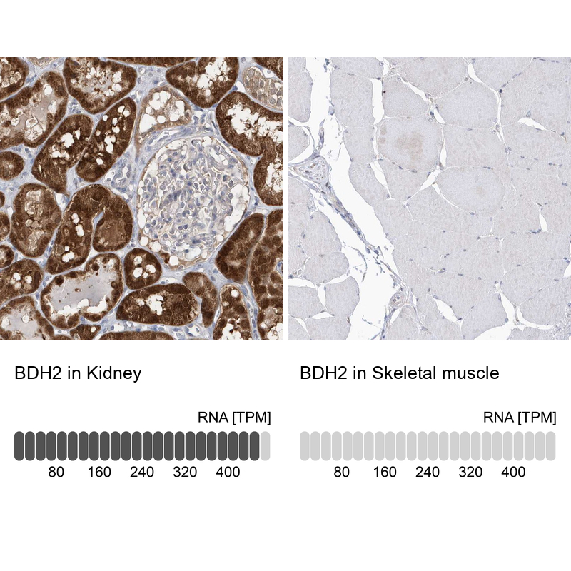 Protein function: Dehydrogenase that mediates the formation of 2,5- dihydroxybenzoic acid (2,5-DHBA), a siderophore that shares structural similarities with bacterial enterobactin and associates with LCN2, thereby playing a key role in iron assimilation and homeostasis. Plays a role in susceptibility to bacterial infection by providing an assimilable source of iron that is exploited by pathogenic bacteria. Also acts as a 3-hydroxybutyrate dehydrogenase (PubMed:16380372). [The UniProt Consortium] Buffer: 40% glycerol and PBS (pH 7.2). 0.02% sodium azide is added as preservative. Highest antigen sequence identity to mouse: 90% and to rat: 89%