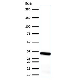 0.2 mg/ml in 1X PBS with 0.1 mg/ml BSA (US sourced) and 0.05% sodium azide. Multiple isoelectric variants of calponin have been identified, however only two molecular weight isoforms exist, a 34 kDa form and a 29kDa form. Expression of the 29 kDa form, I-calponin, is primarily restricted to muscle of the urogenital tract, whereas the higher molecular weight variant has been demonstrated in vascular and visceral smooth muscle. In Western blotting, this mAb reacts with only the 34kDa form of calponin in extracts of human aortic medial smooth muscle and is unreactive with fibroblast extracts of cultivated human foreskin. Calponin is a calmodulin, F-actin and tropomyosin binding protein, which is thought to be involved in the regulation of smooth muscle contraction. Calponin expression is restricted to smooth muscle cells and has been shown to be a marker of the differentiated (contractile) phenotype of developing smooth muscle. Protein function: Thin filament-associated protein that is implicated in the regulation and modulation of smooth muscle contraction. It is capable of binding to actin, calmodulin and tropomyosin. The interaction of calponin with actin inhibits the actomyosin Mg-ATPase activity. [The UniProt Consortium]