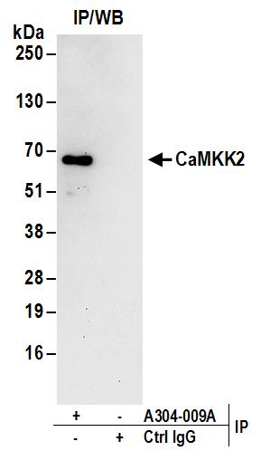 | Immunogen: | synthetic peptide. The epitope recognized by A304-009A-T maps to a region between residue 538 to 588 of human Calcium/Calmodulin-Dependent Protein Kinase Kinase 2, Beta using the numbering given in entry NP_006540.3 (GeneID 10645). |