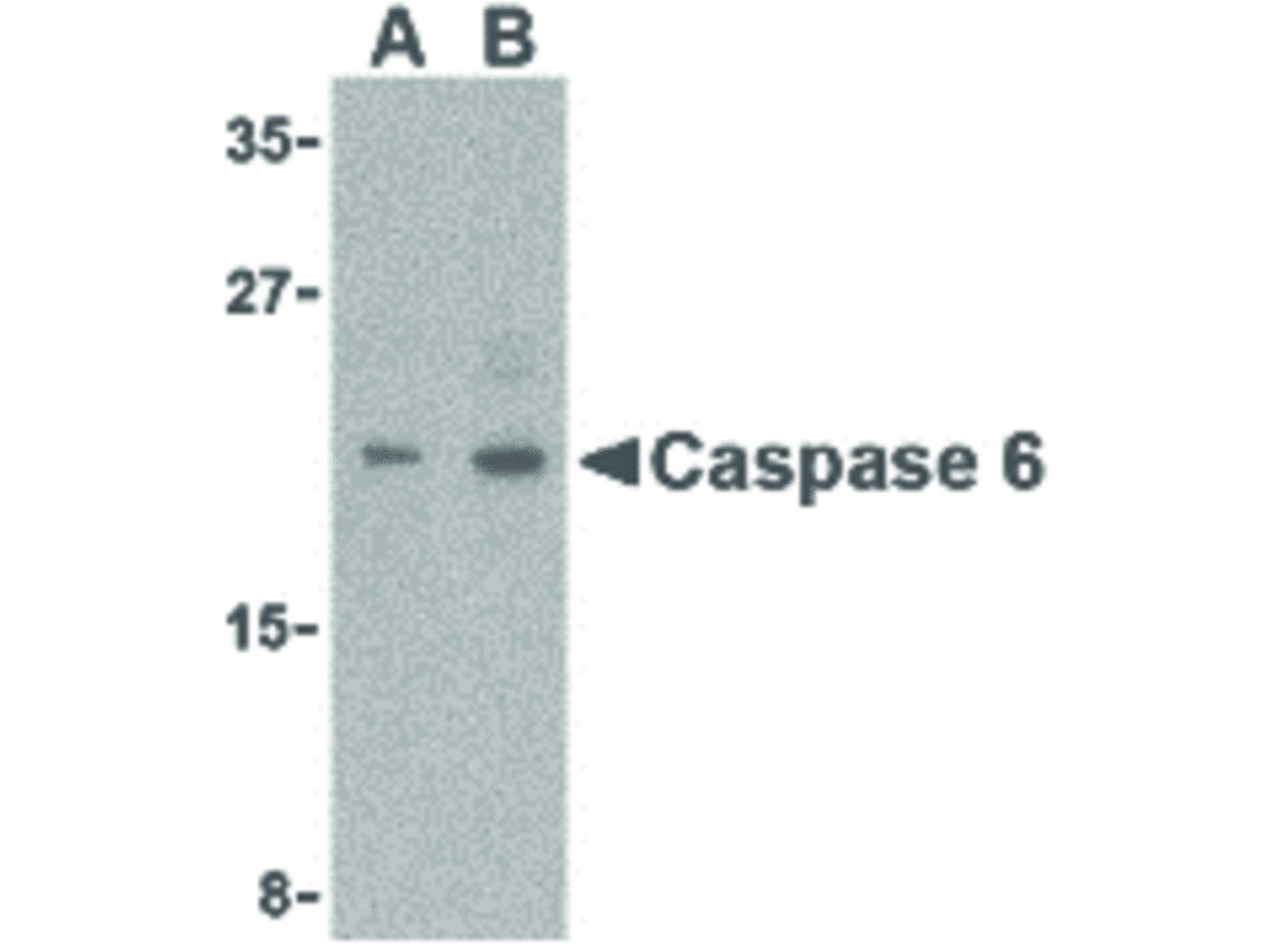 Anti-Caspase-6 Antibody is immunoaffinity purified. Depending on cell lines or tissues used, either full-length or other cleavage products may be observed. Protein function: Involved in the activation cascade of caspases responsible for apoptosis execution. Cleaves poly(ADP-ribose) polymerase in vitro, as well as lamins. Overexpression promotes programmed cell death. [The UniProt Consortium]