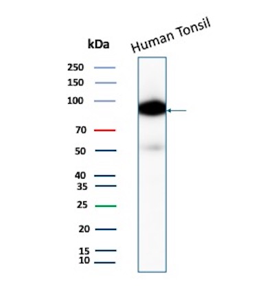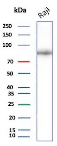 Formulation: Purified Ab with BSA and Azide at 200ug/ml. Cellular Localization: Cell surface. Positive Control: Human tonsil, lymph node or spleen. Raji cells. Chromosome Location: 16p11.2. Protein Function: Functions as a coreceptor for the B-cell antigen receptor complex (BCR) on B-lymphocytes (PubMed:29523808). Decreases the threshold for activation of downstream signaling pathways and for triggering B-cell responses to antigens (PubMed:1373518, PubMed:16672701, PubMed:2463100). Activates signaling pathways that lead to the activation of phosphatidylinositol 3-kinase and the mobilization of intracellular Ca(2+) stores (PubMed:12387743, PubMed:16672701, PubMed:9317126, PubMed:9382888). Is not required for early steps during B cell differentiation in the blood marrow (PubMed:9317126). Required for normal differentiation of B-1 cells (By similarity). Required for normal B cell differentiation and proliferation in response to antigen challenges (PubMed:1373518, PubMed:2463100). Required for normal levels of serum immunoglobulins, and for production of high-affinity antibodies in response to antigen challenge (PubMed:12387743, PubMed:16672701, PubMed:9317126) [The Uniprot Consortium]