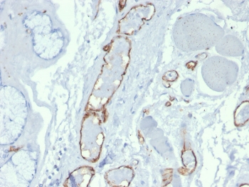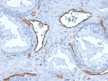 0.2 mg/ml with 0.1 mg/ml BSA (US sourced), 0.05% sodium azide. CD31 (PECAM-1) is a transmembrane glycoprotein member of the immunoglobulin supergene family of adhesion molecules. CD31 is expressed by stem cells of the hematopoietic system and is primarily used to identify and concentrate these cells for experimental studies as well as for bone marrow transplantation. Anti-CD31 has shown to be highly specific and sensitive for vascular endothelial cells. Staining of nonvascular tumors (excluding hematopoietic neoplasms) is rare. CD31 MAb reacts with normal, benign, and malignant endothelial cells which make up blood vessel lining. The level of CD31 expression can help to determine the degree of tumor angiogenesis, and a high level of CD31 expression may imply a rapidly growing tumor and potentially a predictor of tumor recurrence. Protein function: Cell adhesion molecule which is required for leukocyte transendothelial migration (TEM) under most inflammatory conditions (PubMed:19342684, PubMed:17580308). Tyr-690 plays a critical role in TEM and is required for efficient trafficking of PECAM1 to and from the lateral border recycling compartment (LBRC) and is also essential for the LBRC membrane to be targeted around migrating leukocytes (PubMed:19342684). Trans-homophilic interaction may play a role in endothelial cell-cell adhesion via cell junctions (PubMed:27958302). Heterophilic interaction with CD177 plays a role in transendothelial migration of neutrophils (PubMed:17580308). Homophilic ligation of PECAM1 prevents macrophage-mediated phagocytosis of neighboring viable leukocytes by transmitting a detachment signal (PubMed:12110892). Promotes macrophage-mediated phagocytosis of apoptotic leukocytes by tethering them to the phagocytic cells, PECAM1-mediated detachment signal appears to be disabled in apoptotic leukocytes (PubMed:12110892). Modulates bradykinin receptor BDKRB2 activation (PubMed:18672896). Regulates bradykinin- and hyperosmotic shock-induced ERK1/2 activation in endothelial cells (PubMed:18672896). Induces susceptibility to atherosclerosis. [The UniProt Consortium]