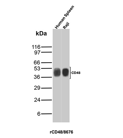 Formulation: Purified Ab with BSA and Azide at 200ug/ml. Cellular Localization: Cell surface. Positive Control: Raji cells. Human lymph node or tonsil. Spleen. Chromosome Location: 1q21.3-q22. Protein Function: Glycosylphosphatidylinositol (GPI)-anchored cell surface glycoprotein that interacts via its N-terminal immunoglobulin domain with cell surface receptors including CD244/2B4 or CD2 to regulate immune cell function and activation (PubMed:12007789, PubMed:19494291, PubMed:27249817, PubMed:9841922). Participates in T-cell signaling transduction by associating with CD2 and efficiently bringing the Src family protein kinase LCK and LAT to the TCR/CD3 complex (PubMed:19494291). In turn, promotes LCK phosphorylation and subsequent activation (PubMed:12007789). Induces the phosphorylation of the cytoplasmic immunoreceptortyrosine switch motifs (ITSMs) of CD244 initiating a series of signaling events that leads to the generation of the immunological synapse and the directed release of cytolytic granules containing perforin and granzymes by T-lymphocytes and NK-cells (PubMed:27249817) [The Uniprot Consortium]