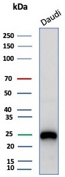 Formulation: Purified Ab WITHOUT BSA and Azide at 1.0mg/ml. Cellular Localization: Cell surface. Positive Control: Germinal center B-cells in a lymph node or tonsil. Chromosome Location: 19q13.2. Protein Function: Required in cooperation with CD79B for initiation of the signal transduction cascade activated by binding of antigen to the B-cell antigen receptor complex (BCR) which leads to internalization of the complex, trafficking to late endosomes and antigen presentation. Also required for BCR surface expression and for efficient differentiation of pro- and pre-B-cells. Stimulates SYK autophosphorylation and activation. Binds to BLNK, bringing BLNK into proximity with SYK and allowing SYK to phosphorylate BLNK. Also interacts with and increases activity of some Src-family tyrosine kinases. Represses BCR signaling during development of immature B-cells [The Uniprot Consortium]