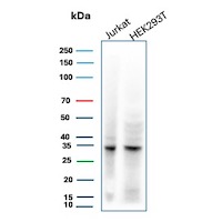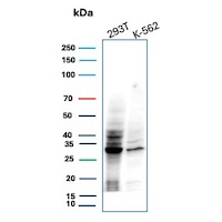 Formulation: Purified Ab with BSA and Azide at 200ug/ml. Cellular Localization: Cajal body, Centrosome, Cytoplasm, Cytoskeleton, Endosome, Microtubule organizing center, Nucleus. Positive Control: Jurkat, HEK293T, K-562 or HeLa cells. Chromosome Location: 12q13.2. Protein Function: Serine/threonine-protein kinase involved in the control of the cell cycle. essential for meiosis, but dispensable for mitosis (PubMed:10499802, PubMed:10884347, PubMed:10995386, PubMed:10995387, PubMed:11051553, PubMed:11113184, PubMed:12944431, PubMed:15800615, PubMed:17495531, PubMed:19966300, PubMed:20935635, PubMed:21262353, PubMed:21596315, PubMed:28216226, PubMed:28666995). Phosphorylates CABLES1, CTNNB1, CDK2AP2, ERCC6, NBN, USP37, p53/TP53, NPM1, CDK7, RB1, BRCA2, MYC, NPAT, EZH2 (PubMed:10499802, PubMed:10995386, PubMed:10995387, PubMed:11051553, PubMed:11113184, PubMed:12944431, PubMed:15800615, PubMed:19966300, PubMed:20935635, PubMed:21262353, PubMed:21596315, PubMed:28216226). Triggers duplication of centrosomes and DNA (PubMed:11051553). Acts at the G1-S transition to promote the E2F transcriptional program and the initiation of DNA synthesis, and modulates G2 progression. controls the timing of entry into mitosis/meiosis by controlling the subsequent activation of cyclin B/CDK1 by phosphorylation, and coordinates the activation of cyclin B/CDK1 at the centrosome and in the nucleus (PubMed:18372919, PubMed:19238148, PubMed:19561645). Crucial role in orchestrating a fine balance between cellular proliferation, cell death, and DNA repair in embryonic stem cells (ESCs) (PubMed:18372919, PubMed:19238148, PubMed:19561645). Activity of CDK2 is maximal during S phase and G2. activated by interaction with cyclin E during the early stages of DNA synthesis to permit G1-S transition, and subsequently activated by cyclin A2 (cyclin A1 in germ cells) during the late stages of DNA replication to drive the transition from S phase to mitosis, the G2 phase (PubMed:18372919, PubMed:19238148, PubMed:19561645). EZH2 phosphorylation promotes H3K27me3 maintenance and epigenetic gene silencing (PubMed:20935635). Cyclin E/CDK2 prevents oxidative stress-mediated Ras-induced senescence by phosphorylating MYC (PubMed:19966300). Involved in G1-S phase DNA damage checkpoint that prevents cells with damaged DNA from initiating mitosis. regulates homologous recombination-dependent repair by phosphorylating BRCA2, this phosphorylation is low in S phase when recombination is active, but increases as cells progress towards mitosis (PubMed:15800615, PubMed:20195506, PubMed:21319273). In response to DNA damage, double-strand break repair by homologous recombination a reduction of CDK2-mediated BRCA2 phosphorylation (PubMed:15800615). Involved in regulation of telomere repair by mediating phosphorylation of NBN (PubMed:28216226). Phosphorylation of RB1 disturbs its interaction with E2F1 (PubMed:10499802). NPM1 phosphorylation by cyclin E/CDK2 promotes its dissociates from unduplicated centrosomes, thus initiating centrosome duplication (PubMed:11051553). Cyclin E/CDK2-mediated phosphorylation of NPAT at G1-S transition and until prophase stimulates the NPAT-mediated activation of histone gene transcription during S phase (PubMed:10995386, PubMed:10995387). Required for vitamin D-mediated growth inhibition by being itself inactivated (PubMed:20147522). Involved in the nitric oxide- (NO) mediated signaling in a nitrosylation/activation-dependent manner (PubMed:20079829). USP37 is activated by phosphorylation and thus triggers G1-S transition (PubMed:21596315). CTNNB1 phosphorylation regulates insulin internalization (PubMed:21262353). Phosphorylates FOXP3 and negatively regulates its transcriptional activity and protein stability (By similarity). Phosphorylates ERCC6 which is essential for its chromatin remodeling activity at DNA double-strand breaks (PubMed:29203878). Acts as a regulator of the phosphatidylinositol 3-kinase/protein kinase B signal transduction by mediating phosphorylation of the C-terminus of protein kinase B (PKB/AKT1 and PKB/AKT2), promoting its activation (PubMed:24670654) [The Uniprot Consortium]