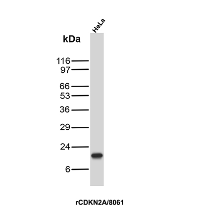 Formulation: Purified Ab WITHOUT BSA and Azide at 1.0mg/ml. Cellular Localization: Nucleus. Cytoplasm. Positive Control: Human cervical squamous cell carcinoma. Chromosome Location: 9p21.3. Protein Function: Acts as a negative regulator of the proliferation of normal cells by interacting strongly with CDK4 and CDK6. This inhibits their ability to interact with cyclins D and to phosphorylate the retinoblastoma protein [The Uniprot Consortium]