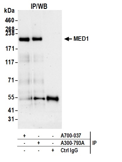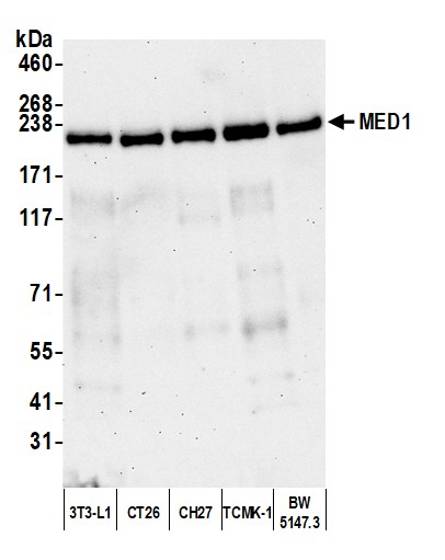 | Keywords: | Anti-PBP, Anti-MED1, Anti-ARC205, Anti-TRIP-2, Anti-Trap220, Anti-PPAR-binding protein, Anti-TR-interacting protein 2, Anti-Mediator complex subunit 1, Anti-p53 regulatory protein RB18A, Anti-Thyroid receptor-interacting protein 2 |