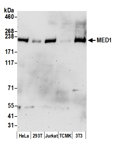 | Keywords: | Anti-PBP, Anti-MED1, Anti-ARC205, Anti-TRIP-2, Anti-Trap220, Anti-PPAR-binding protein, Anti-TR-interacting protein 2, Anti-Mediator complex subunit 1, Anti-p53 regulatory protein RB18A, Anti-Thyroid receptor-interacting protein 2 |
