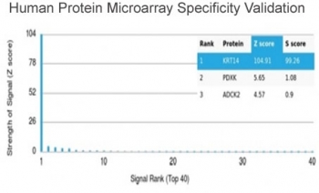 | Immunogen: | A portion of amino acids 351-472 from the human KRT14 protein |