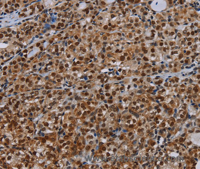 NRIP (Nuclear receptor interaction protein), also known as IQWD1 ( IQ motif and WD repeat-containing protein 1), MSTP055, ARCAP or PC326, is an 860 amino acid protein that localizes to the nucleus and contains one IQ domain and seven WD-repeats. Expressed in testis, skeletal muscle, prostate and heart, NRIP functions as a ligand-dependent coactivator of nuclear receptors and specifically enhances the transcriptional activity of AR (androgen receptor) and GR (glucocorticoid receptor). NRIP exists as three isoforms that are produced by alternative splicing events. Protein function: Ligand-dependent coactivator of nuclear receptors. Enhance transcriptional activity of the nuclear receptors NR3C1 and AR. May function as a substrate receptor for CUL4-DDB1 E3 ubiquitin-protein ligase complex. [The UniProt Consortium]