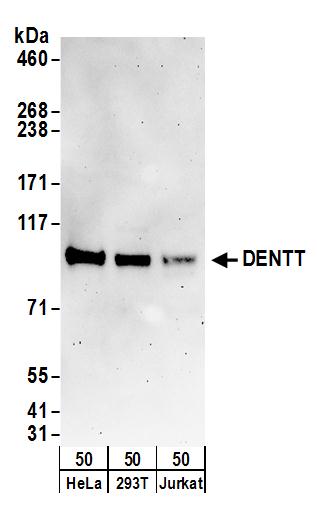 | Immunogen: | synthetic peptide. The epitope recognized by A304-013A-T maps to a region between residue 643 to 693 of human TSPY-Like 2 using the numbering given in entry NP_071400.1 (GeneID 64061). |