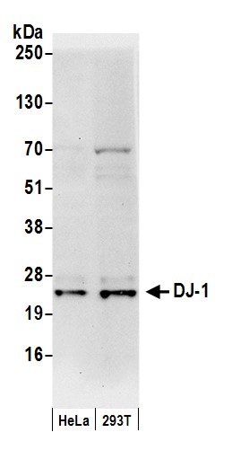 | Immunogen: | synthetic peptide. The epitope recognized by A300-744A-T maps to a region between residue 140 and the C-terminus (residue 189) of human DJ-1 (PARK7, Parkinson Disease 7) using the numbering given in entry NP_009193.2 (GeneID 11315 ). |