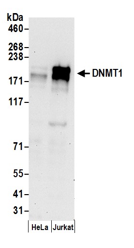 | Immunogen: | synthetic peptide. The epitope recognized by A300-041A-T maps to a region between residue 350 and 400 of human DNAethyltranserase 1 using the numbering given in entry NP_001370.1 (GeneID 1786). |