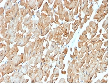 1 mg/ml in 1X PBS, BSA free, sodium azide free. Dystrophin-glycoprotein complex (DGC) connects the F-Actin cytoskeleton on the inner surface of muscle fibers to the surrounding extracellular matrix, through the cell membrane interface. A deficiency in this protein contributes to Duchenne (DMD) and Becker (BMD) muscular dystrophies. The human dystrophin gene measures 2.4 megabases, has more than 80 exons, produces a 14 kb mRNA and contains at least 8 independent tissue-specific promoters and 2 poly A sites. The dystrophin mRNA can undergo differential splicing and produce a range of transcripts that encode a large set of proteins. Dystrophin represents approximately 0.002% of total striated muscle protein and localizes to triadic junctions in skeletal muscle, where it is thought to influence calcium ion homeostasis and force transmission. Protein function: Anchors the extracellular matrix to the cytoskeleton via F- actin. Ligand for dystroglycan. Component of the dystrophin-associated glycoprotein complex which accumulates at the neuromuscular junction (NMJ) and at a variety of synapses in the peripheral and central nervous systems and has a structural function in stabilizing the sarcolemma. Also implicated in signaling events and synaptic transmission. [The UniProt Consortium]