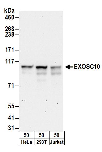 | Immunogen: | synthetic peptide. The epitope recognized by A303-988A-T maps to a region between residue 750 to 800 of human Exosome Component 10 using the numbering given in entry NP_001001998.1 (GeneID 5394). |