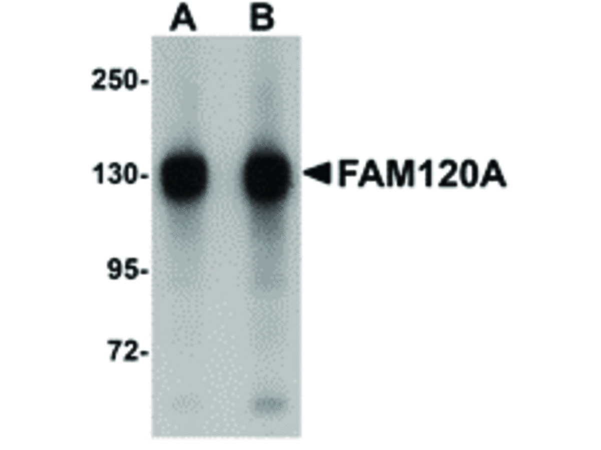 Anti-FAM120A Antibody was affinity purified from monospecific antiserum by immunoaffinity chromatography. This antibody will not cross-reacti with FAM120B / PGCC1. Protein function: May participate in mRNA transport in the cytoplasm. Critical component of the oxidative stress-induced survival signaling. Activates src family kinases and acts as a scaffolding protein enabling src family kinases to phosphorylate and activate PI3-kinase. Binds RNA and promotes the secretion of IGF-II. May play a pivotal role in the progression of scirrhous- type gastric cancer by supporting cancer cell survival in environments with various oxidative stresses. [The UniProt Consortium]