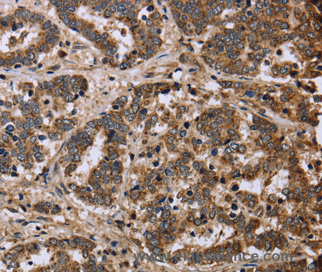 The protein encoded by this gene is an enzymatic component of the tricarboxylic acid (TCA) cycle, or Krebs cycle, and catalyzes the formation of L-malate from fumarate. It exists in both a cytosolic form and an N-terminal extended form, differing only in the translation start site used. The N-terminal extended form is targeted to the mitochondrion, where the removal of the extension generates the same form as in the cytoplasm. It is similar to some thermostable class II fumarases and functions as a homotetramer. Mutations in this gene can cause fumarase deficiency and lead to progressive encephalopathy. Protein function: Also acts as a tumor suppressor. [The UniProt Consortium]