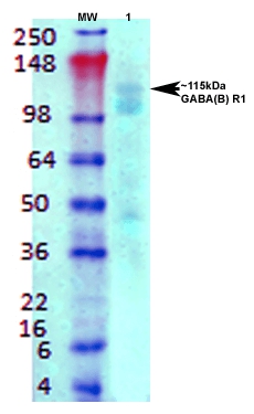 | Immunogen: | Fusion protein around aa. 873-977 (cytoplasmic C-terminus) of Rat GABA B Receptor 1 |