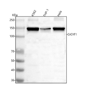 Adding 0.2 ml of distilled water will yield a concentration of 500 ug/ml. GIGYF1 antibody detects... more
