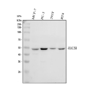 | Immunogen: | E.coli-derived human HAUS8 recombinant protein (Position: D86-A322) |
