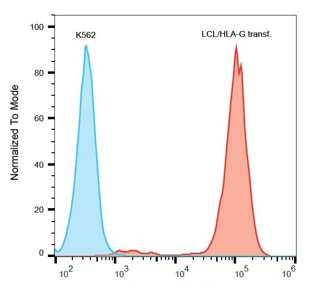 | Immunogen: | HLA-A2.1/human beta2-microglobulin double transgenic mice were immunized with murine L cells transfected with both human beta2-microglobulin and HLA-G |
