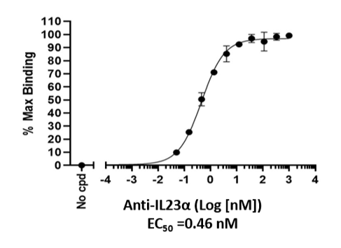 This purified recombinant monoclonal antibody is a human anti-IL23alpha that selectively binds to the p19 subunit of heterodimeric IL-23, which is composed of p19 and IL-12 p40. The variable regions for this antibody are based on an FDA-approved drug Skyrizi(R) (risankizumab-rzaa), sold by AbbVie. This antibody has been tested for specific binding affinity to IL23alpha/IL12beta antigen.