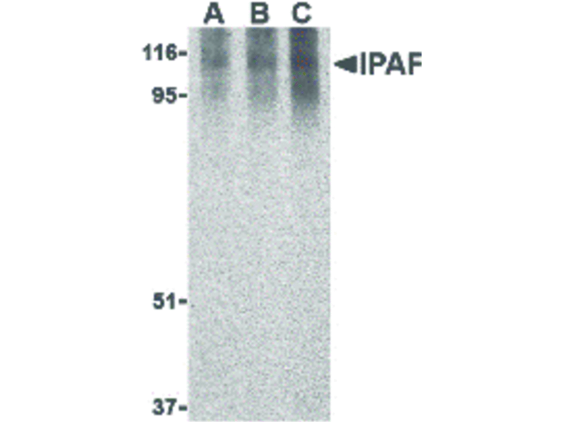 | Immunogen: | Synthetic peptide corresponding to amino acids near the C-terminus of human Ipaf. |