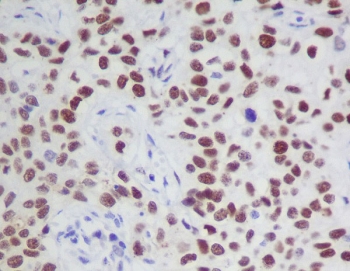 Antibody in PBS with 0.02% sodium azide, 50% glycerol and 0.4-0.5mg/ml BSA. Janus kinase 2 is a human protein that has been implicated in signaling by members of the type II cytokine receptor family, the GM-CSF receptor family, the gp130 receptor family, and the single chain receptors. Protein function: Non-receptor tyrosine kinase involved in various processes such as cell growth, development, differentiation or histone modifications. Mediates essential signaling events in both innate and adaptive immunity. In the cytoplasm, plays a pivotal role in signal transduction via its association with type I receptors such as growth hormone (GHR), prolactin (PRLR), leptin (LEPR), erythropoietin (EPOR), thrombopoietin (THPO), or type II receptors including IFN-alpha, IFN- beta, IFN-gamma and multiple interleukins (PubMed:7615558). Following ligand-binding to cell surface receptors, phosphorylates specific tyrosine residues on the cytoplasmic tails of the receptor, creating docking sites for STATs proteins (PubMed:9618263). Subsequently, phosphorylates the STATs proteins once they are recruited to the receptor. Phosphorylated STATs then form homodimer or heterodimers and translocate to the nucleus to activate gene transcription. For example, cell stimulation with erythropoietin (EPO) during erythropoiesis leads to JAK2 autophosphorylation, activation, and its association with erythropoietin receptor (EPOR) that becomes phosphorylated in its cytoplasmic domain. Then, STAT5 (STAT5A or STAT5B) is recruited, phosphorylated and activated by JAK2. Once activated, dimerized STAT5 translocates into the nucleus and promotes the transcription of several essential genes involved in the modulation of erythropoiesis. Part of a signaling cascade that is activated by increased cellular retinol and that leads to the activation of STAT5 (STAT5A or STAT5B) (PubMed:21368206). In addition, JAK2 mediates angiotensin-2-induced ARHGEF1 phosphorylation (PubMed:20098430). Plays a role in cell cycle by phosphorylating CDKN1B (PubMed:21423214). Cooperates with TEC through reciprocal phosphorylation to mediate cytokine-driven activation of FOS transcription. In the nucleus, plays a key role in chromatin by specifically mediating phosphorylation of 'Tyr-41' of histone H3 (H3Y41ph), a specific tag that promotes exclusion of CBX5 (HP1 alpha) from chromatin (PubMed:19783980). [The UniProt Consortium]