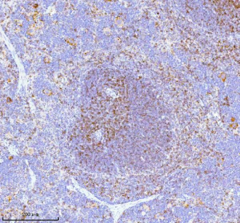 Adding 0.2 ml of distilled water will yield a concentration of 500 ug/ml. LAT antibody detects Linker for activation of T cells, a critical transmembrane adaptor protein that functions as a central scaffold in T-cell receptor (TCR) signaling. The UniProt recommended name is Linker for activation of T cells (LAT). This protein coordinates the assembly of multiprotein complexes that mediate T-cell activation, proliferation, and immune response regulation. LAT is indispensable for coupling TCR engagement to downstream signaling cascades that drive cytokine production and effector cell differentiation.Functionally, LAT antibody identifies a 233-amino-acid membrane protein that localizes to lipid rafts of the plasma membrane. Upon TCR stimulation, the Src-family kinase Lck and the ZAP-70 tyrosine kinase phosphorylate multiple tyrosine residues on LAT, creating docking sites for SH2-domain-containing proteins such as Grb2, PLC-gamma1, and Gads. These interactions recruit downstream effectors that activate calcium flux, MAPK signaling, and transcriptional pathways including NFAT, NF-kappaB, and AP-1. Through these mechanisms, LAT orchestrates the signal amplification necessary for full T-cell activation.The LAT gene is located on chromosome 16p11.2 and encodes a single-pass type III transmembrane protein with a short extracellular domain and a cytoplasmic tail rich in tyrosine residues. The LAT scaffold acts as an organizational hub, integrating signals from the TCR, co-stimulatory receptors, and cytokine receptors. LAT phosphorylation dynamics are tightly regulated to prevent aberrant T-cell activation and autoimmunity. In developing thymocytes, LAT signaling contributes to both positive and negative selection, shaping the mature T-cell repertoire.Defects in LAT expression or phosphorylation impair T-cell development and lead to severe combined immunodeficiency-like phenotypes. Conversely, gain-of-function mutations or dysregulated LAT signaling can cause hyperactivation syndromes, lymphoproliferative disorders, or autoimmunity. LAT also functions in mast cells, natural killer cells, and platelets, where it mediates Fc receptor-dependent signaling and degranulation responses.LAT antibody is widely used in immunology, signal transduction, and cell biology research. It is suitable for western blotting, flow cytometry, and immunofluorescence to examine TCR-induced phosphorylation and signal complex formation. Researchers employ this antibody to dissect T-cell activation pathways and study immune regulation at the molecular level. LAT serves as a key marker of functional TCR signaling in both primary immune cells and model systems.Structurally, LAT contains a cytoplasmic region with multiple phosphorylation sites that function as SH2-binding motifs for signaling partners. It forms large signalosomes through multivalent interactions that promote phase-separated clusters at the membrane. NSJ Bioreagents provides LAT antibody reagents validated for use in T-cell activation, immune signaling, and phosphorylation research.