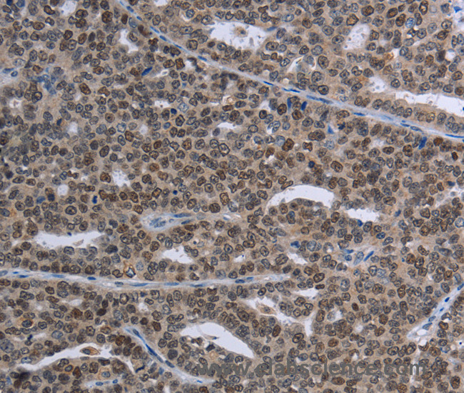 This gene is a member of the melanoma antigen gene (MAGE) family. The proteins of this family are tumor-specific antigens that can be recognized by autologous cytolytic T lymphocytes. This protein contains a large number of unique short repetitive sequences in front of the MAGE-homologous sequence, and therefore is about 800 aa longer than the other MAGE proteins.