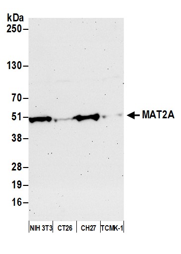 | Immunogen: | synthetic peptide. The epitope recognized by A304-279A-T maps to a region between residue 1 to 50 of human Methionine Adenosyltransferase II, Alpha using the numbering given in entry NP_005902.1 (GeneID 4144). |
