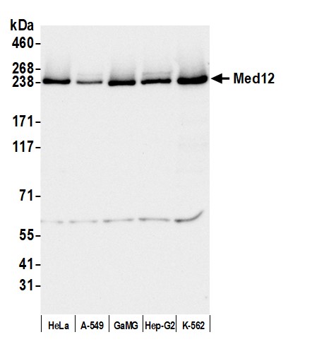 | Keywords: | Anti-MED12, Anti-ARC240, Anti-Trap230, Anti-CAG repeat protein 45, Anti-OPA-containing protein, Anti-Mediator complex subunit 12, Anti-Activator-recruited cofactor 240 kDa component, Anti-Trinucleotide repeat-containing gene 11 protein |