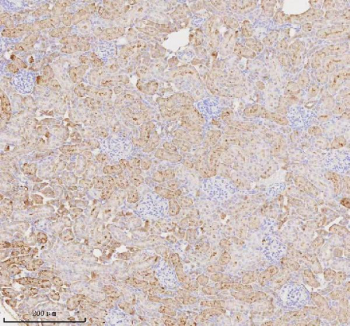 Adding 0.2 ml of distilled water will yield a concentration of 500 ug/ml. MIOX antibody detects Myo-inositol oxygenase, encoded by the MIOX gene. Myo-inositol oxygenase is an enzyme located in the renal cortex that catalyzes the first committed step in the myo-inositol catabolism pathway. MIOX antibody provides researchers with a specialized reagent for studying renal metabolism, inositol regulation, and diabetic kidney disease.Myo-inositol oxygenase belongs to the sugar oxygenase family of non-heme iron enzymes. Research using MIOX antibody has shown that it catalyzes the conversion of myo-inositol to D-glucuronic acid, a pathway that links inositol metabolism to glucuronidation and detoxification. Its restricted expression in the kidney makes MIOX a tissue-specific metabolic regulator.Studies with MIOX antibody have revealed that overexpression of MIOX occurs in diabetic nephropathy, where it contributes to oxidative stress and tubular injury. Elevated activity leads to increased generation of reactive oxygen species, impairing renal function. These findings highlight its role as both a metabolic enzyme and a contributor to disease progression in diabetes.Dysregulation of Myo-inositol oxygenase has also been implicated in kidney injury, fibrosis, and metabolic disorders. Research using MIOX antibody has shown that suppression of MIOX protects against oxidative stress-induced renal injury, suggesting therapeutic potential in chronic kidney disease. Beyond renal biology, MIOX may contribute to systemic regulation of inositol levels and metabolic pathways.MIOX antibody is widely applied in western blotting, immunohistochemistry, and enzymatic studies. Western blotting quantifies expression in renal tissue, immunohistochemistry highlights tubular expression in kidney cortex, and enzymatic assays confirm catalytic activity. These applications make MIOX antibody indispensable for renal metabolism research.By supplying validated MIOX antibody reagents, NSJ Bioreagents supports studies into kidney metabolism, diabetes, and oxidative stress. Detection of Myo-inositol oxygenase provides researchers with insight into how inositol catabolism contributes to renal physiology and pathology.