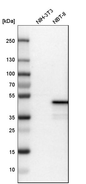 Immunogen: Recombinant Protein Epitope Signature Tag (PrEST) antigen sequence: INVNPCAEGW MDWAASKISG WTQALPDMVV SHLFGKEEMQ SNVEVVHTYR QHIVNDMNPG NLHLFINAYN SRRDLEIERP MPGTHTVTLQ CPALLVVGDS SPAVDAVVEC NSKLDPTKTT LL (ATA-APrEST70129)