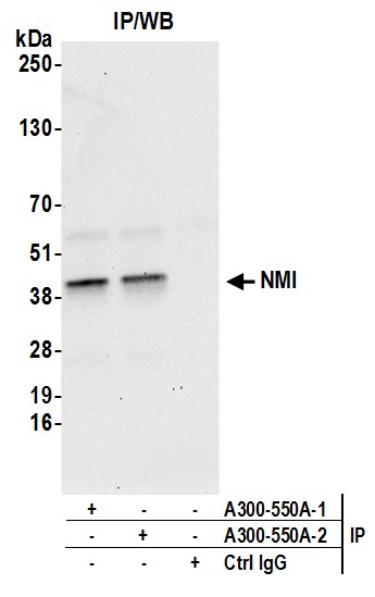 | Immunogen: | synthetic peptide. The epitope recognized by A300-550A-T maps to a region between residues 1 and 50 of human N-myc and STAT interactor using the numbering given in entry NP_004679.1 (GeneID 9111). |