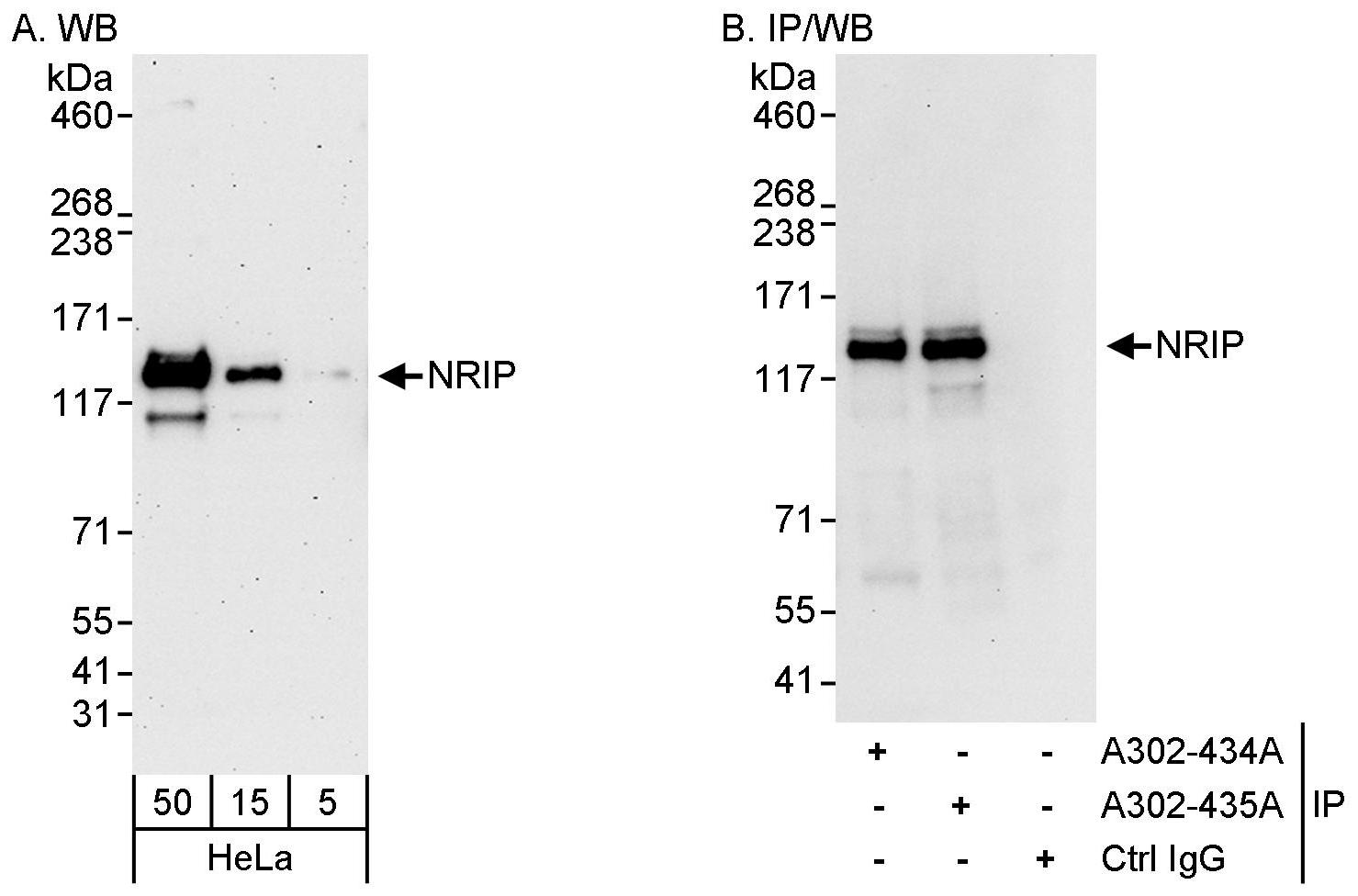| Immunogen: | synthetic peptide. The epitope recognized by A302-435A-T maps to a region between residue 600 and 650 of human nuclear receptor interaction protein (IQ motif and WD repeats 1) using the numbering given in entry NP_001017977.1 (GeneID 55827). |