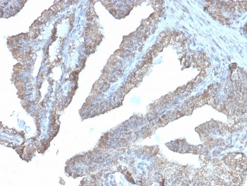 1 mg/ml in 1X PBS, BSA free, sodium azide free. Recognizes a 53kDa protein, identified as the Ornithine Decarboxylase (ODC-1). ODC is the initial and rate-limiting enzyme in the biosynthetic pathway of polyamines and is involved in the conversion of ornithine to putrescine. The biological activity of ODC-1 is rapidly induced in response to virtually all agents known to promote cell proliferation including hormones, drugs, growth factors, mitogens, and tumor promoters. Reportedly, ODC mRNA levels are elevated in lung carcinomas as well as in colon adenomas and carcinomas. ODC activity in colorectal carcinomas is greater than those in adenomas and normal mucosa. Protein function: Catalyzes the first and rate-limiting step of polyamine biosynthesis that converts ornithine into putrescine, which is the precursor for the polyamines, spermidine and spermine. Polyamines are essential for cell proliferation and are implicated in cellular processes, ranging from DNA replication to apoptosis. [The UniProt Consortium]